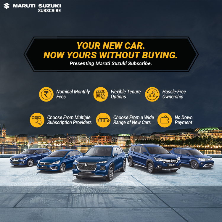 Maruti Suzuki Subscribe enables all customers to enjoy driving their preferred Maruti Suzuki cars without having to deal with all the financial responsibilities that come with owning a car.All you need to do is opt for a monthly subscription plan at a fixed monthly fee, which includes the routine maintenance and insurance costs, and choose a flexible tenure. At My Car in, Talegaon, Pune, all Hatchback, Sedan, SUV, the MUV models line-up includes Baleno, Invicto, EVitara, Jimny, Ciaz, Ignis, Fronx, Grand Vitara, XL6. Here, you will enjoy Maruti Suzuki Subscribe benefits such as: